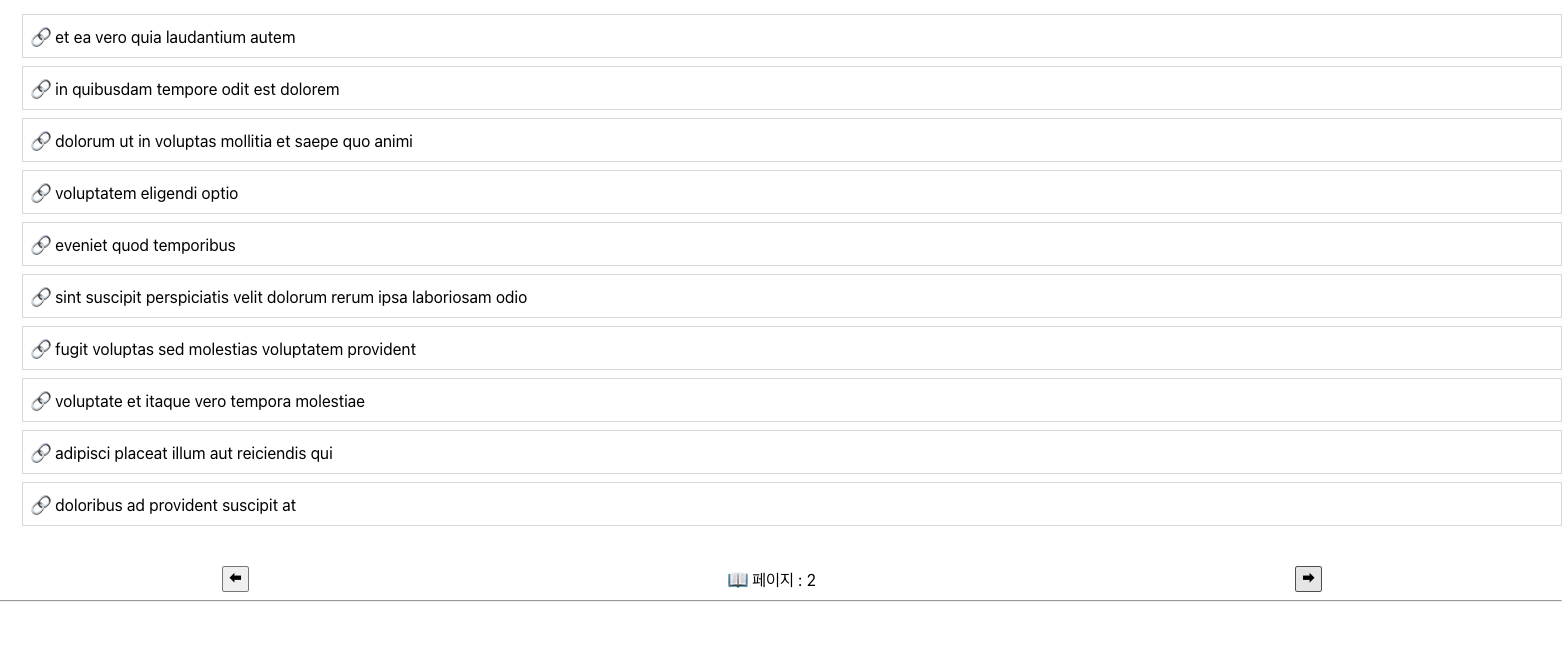 정적인 게시판에서는 페이지네이션을 통해 리스트를 나누어 보여주기로 하였다.