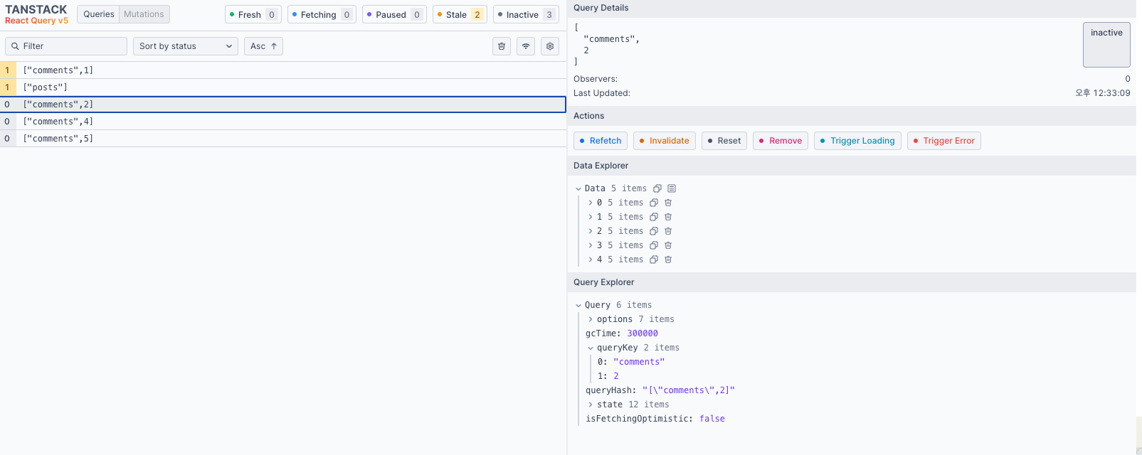 inactive 상태인 댓글의 경우 gcTime이 적용되어 해당 시간 이후에 화면에서 사라지게 된다.