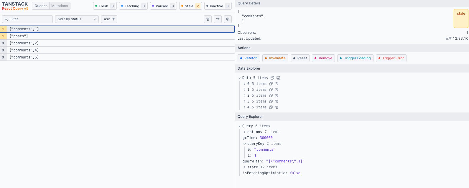- gcTime: inactivity 상태로 얼마나 캐시 데이터를 유지할건지